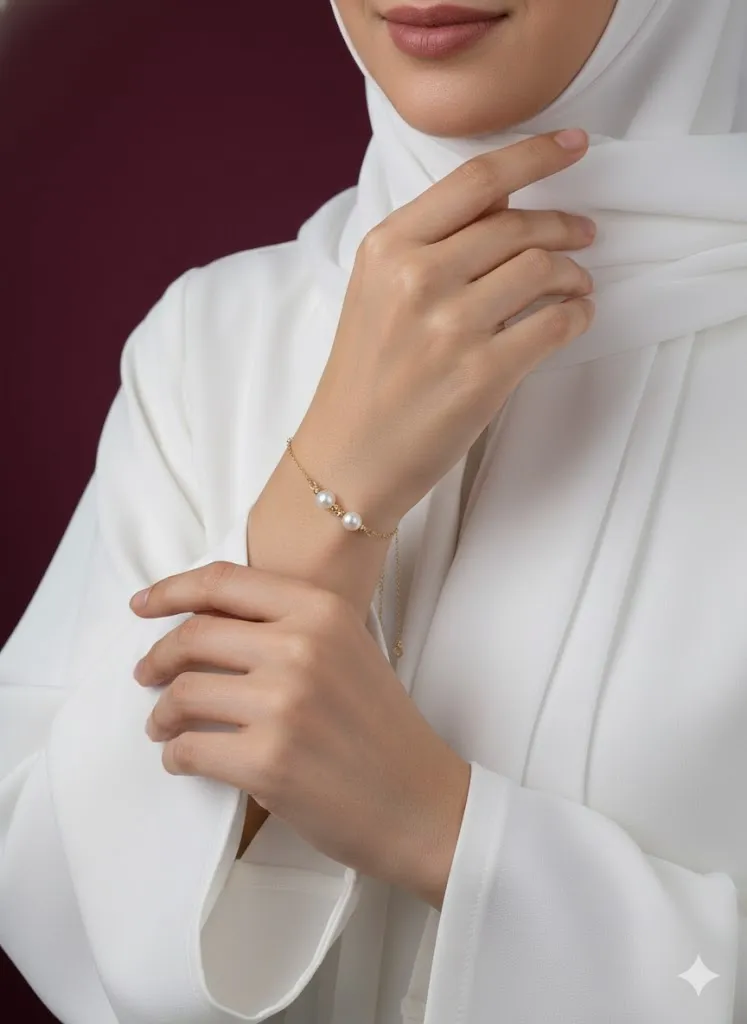 دستبند طلای دو مروارید