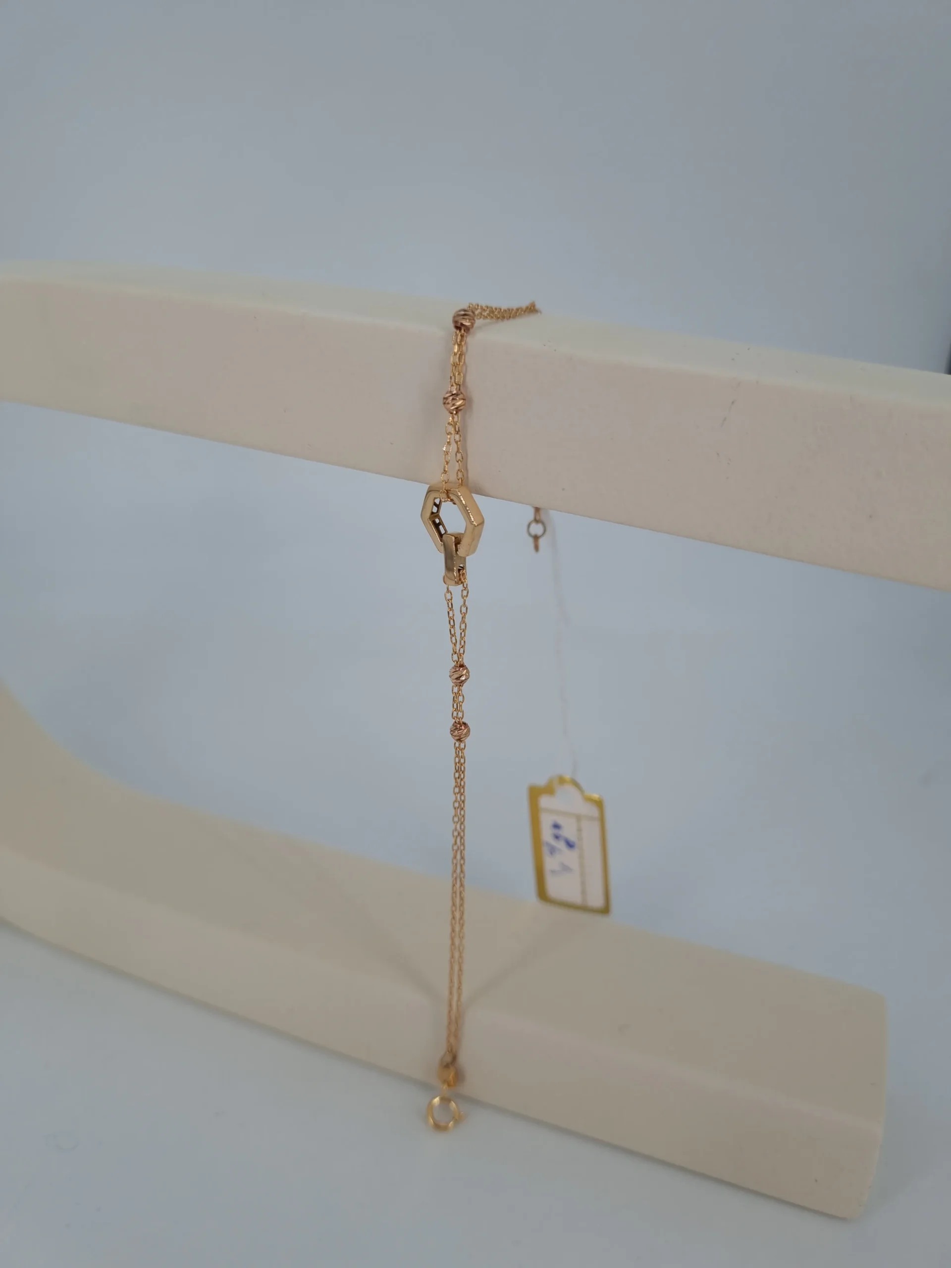 دستبند طلای ۶ ضلعی و گوی با طراحی هندسی جذاب و مدرن، گزینهای عالی برای افرادی است که به دنبال زیورآلات متفاوت و چشمنواز هستند. این محصول با وزن ۱.۶ گرم و کد B049 از طلای خالص و باکیفیت ساخته شده و ترکیب زیبای گویهای طلایی با عناصر ششضلعی، ظاهری خاص و پرجزئیات به آن بخشیده است. این دستبند بهراحتی با استایلهای رسمی و روزمره هماهنگ میشود و همیشه جلوهای خاص و شیک به دستان شما میدهد.